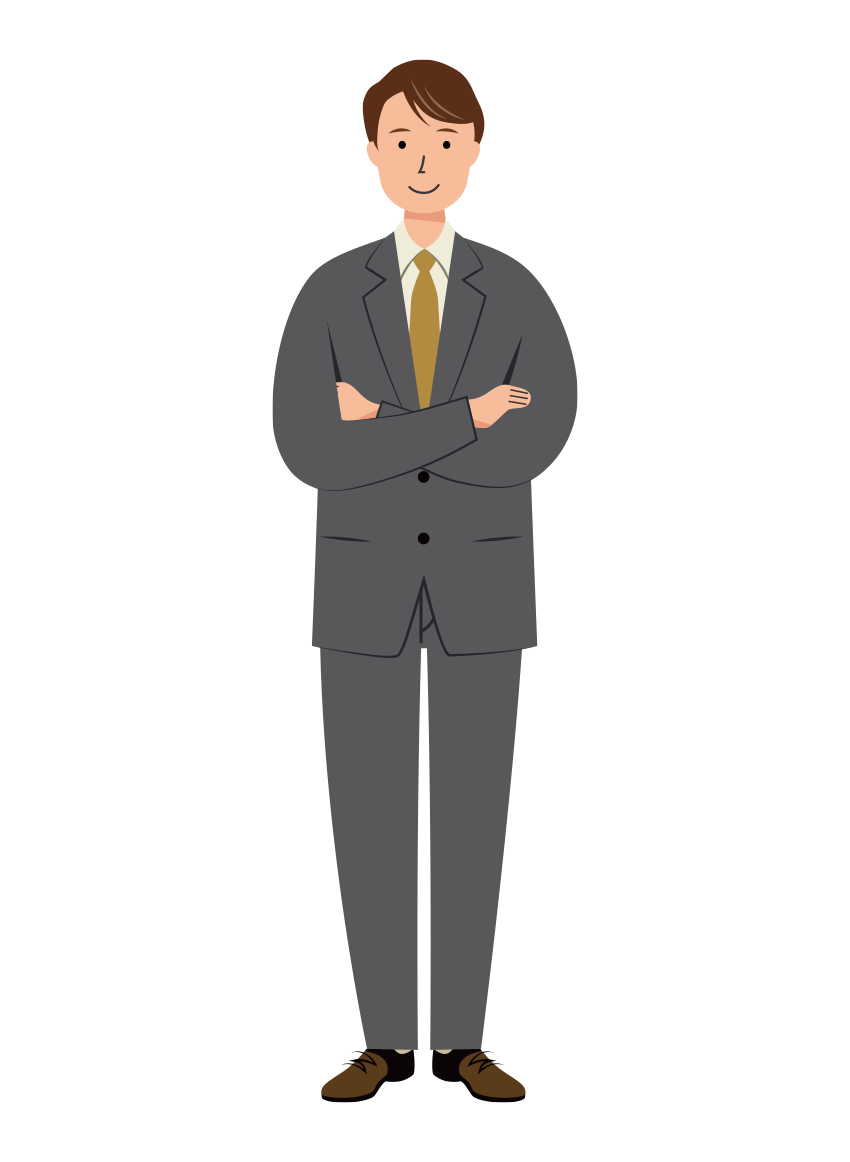 黒いスーツを着た、両腕を組んでいる男性会社員の全身イラストです。