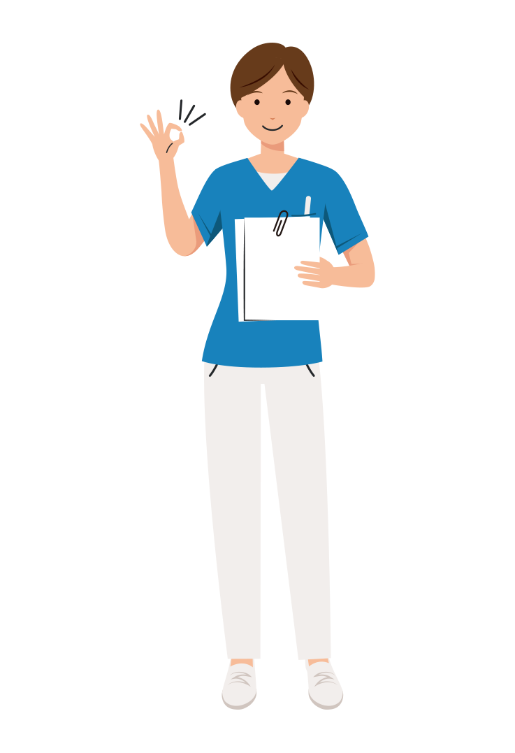 看護師 イラスト(女性・全身)| 無料・商用利用可 | NURFC023-C 2026 4/29 説明 OK・NGサイン 2026年4月29日 清潔感のある青いスクラブ服を着た女性の看護師が、資料を片手に持ちながら、OKサインを出している全身イラストです。 nurse-female-color-0023-01ダウンロード 高画質350dpiの、背景透明PNG・Adobe aiデータ素材は BOOTH で販売中!Canvaでも使える編集しやすい素材セットです。 現在準備中です 看護師 案内 説明 ひらめき 指摘 考える OK・NGサイン ガッツポーズ 厳選・人気の看護師イラスト OK・NGサイン 看護師 イラスト(男性・全身)| 無料・商用利用可 | NURMC028-C 2026年4月12日 案内 看護師 イラスト(男性・上半身)| 無料・商用利用可 | NUMUBC027-C 2026年4月19日 説明 OK・NGサイン