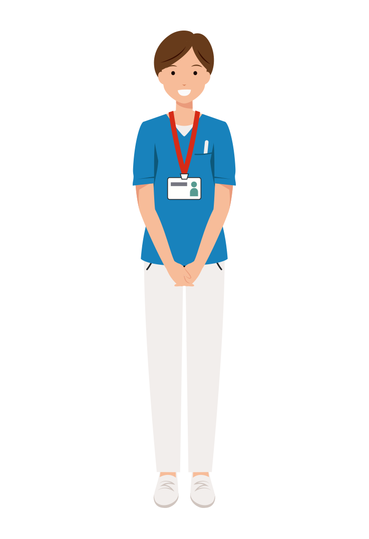 看護師 イラスト(女性・全身)| 無料・商用利用可 | NURFC002-C 2026 4/29 案内 2026年4月29日 清潔感のある青いスクラブ服を着た女性の看護師が、IDカードを首から下げている笑顔の表情の全身イラストです。 nurse-female-color-0002-01ダウンロード 高画質350dpiの、背景透明PNG・Adobe aiデータ素材は BOOTH で販売中!Canvaでも使える編集しやすい素材セットです。 現在準備中です 看護師 案内 説明 ひらめき 指摘 考える OK・NGサイン ガッツポーズ 厳選・人気の看護師イラスト OK・NGサイン 看護師 イラスト(男性・全身)| 無料・商用利用可 | NURMC028-C 2026年4月12日 案内 看護師 イラスト(男性・上半身)| 無料・商用利用可 | NUMUBC027-C 2026年4月19日 案内
