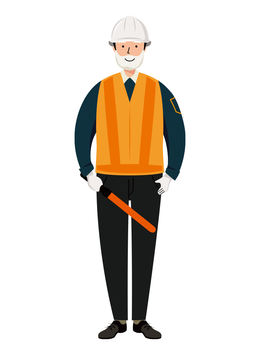 交通誘導員 イラスト(シニア男性・全身)| 無料・商用利用可 | TGSMC006-C