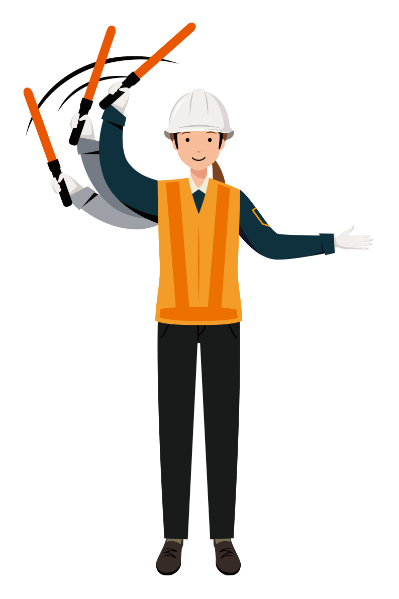交通誘導員 イラスト(女性・全身)| 無料・商用利用可 | TGFC021-C 2026 4/25 進行・誘導 2026年4月25日 反射ベストを着た女性の交通誘導員が、進行方向に左手を伸ばし誘導棒を振る全身イラストです。 traffic-guard-female-color-021-01PNGダウンロード 高画質350dpiの、背景透明PNG・Adobe aiデータ素材は BOOTH で販売中!Canvaでも使える編集しやすい素材セットです。 現在準備中です 交通誘導員 停止ポーズ 進行・誘導 待機ポーズ 挨拶 説明 厳選・人気の交通誘導員イラスト 挨拶 交通誘導員 イラスト(男性・全身)| 無料・商用利用可 | TGMC005-C 2026年4月17日 挨拶 交通誘導員 イラスト(男性・上半身)| 無料・商用利用可 | TGMUBC004-C 2026年4月17日 停止 交通誘導員 イラスト(男性・全身)| 無料・商用利用可 | TGMC020-C 2026年4月17日 進行・誘導 交通誘導員 イラスト(男性・全身)| 無料・商用利用可 | TGMC023-C 2026年4月17日 挨拶 交通誘導員 イラスト(男性・上半身)| 無料・商用利用可 | TGMUBC003-C 2026年4月17日 進行・誘導
